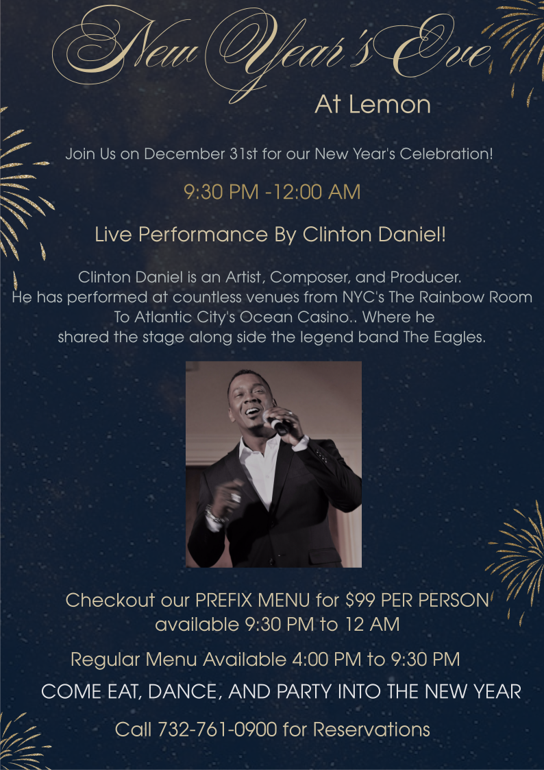 Join us for a live performance while bringing in the New Year. See our prefix menu below!